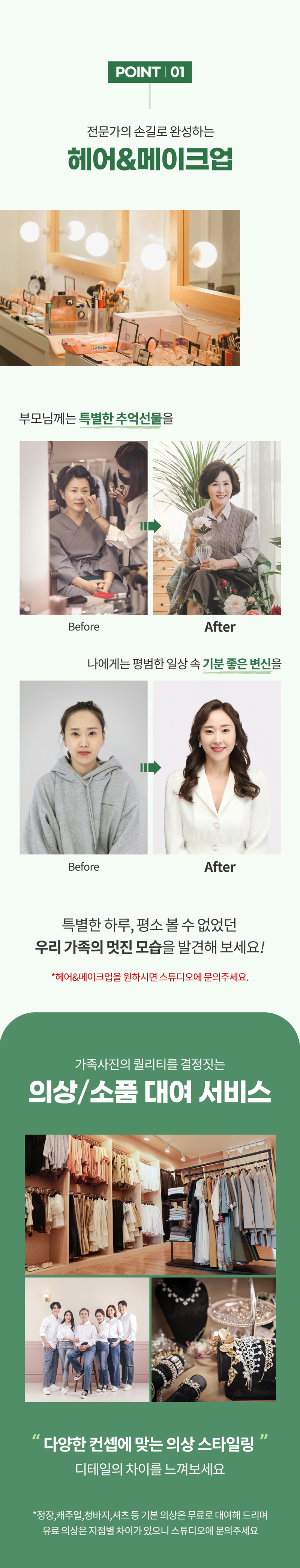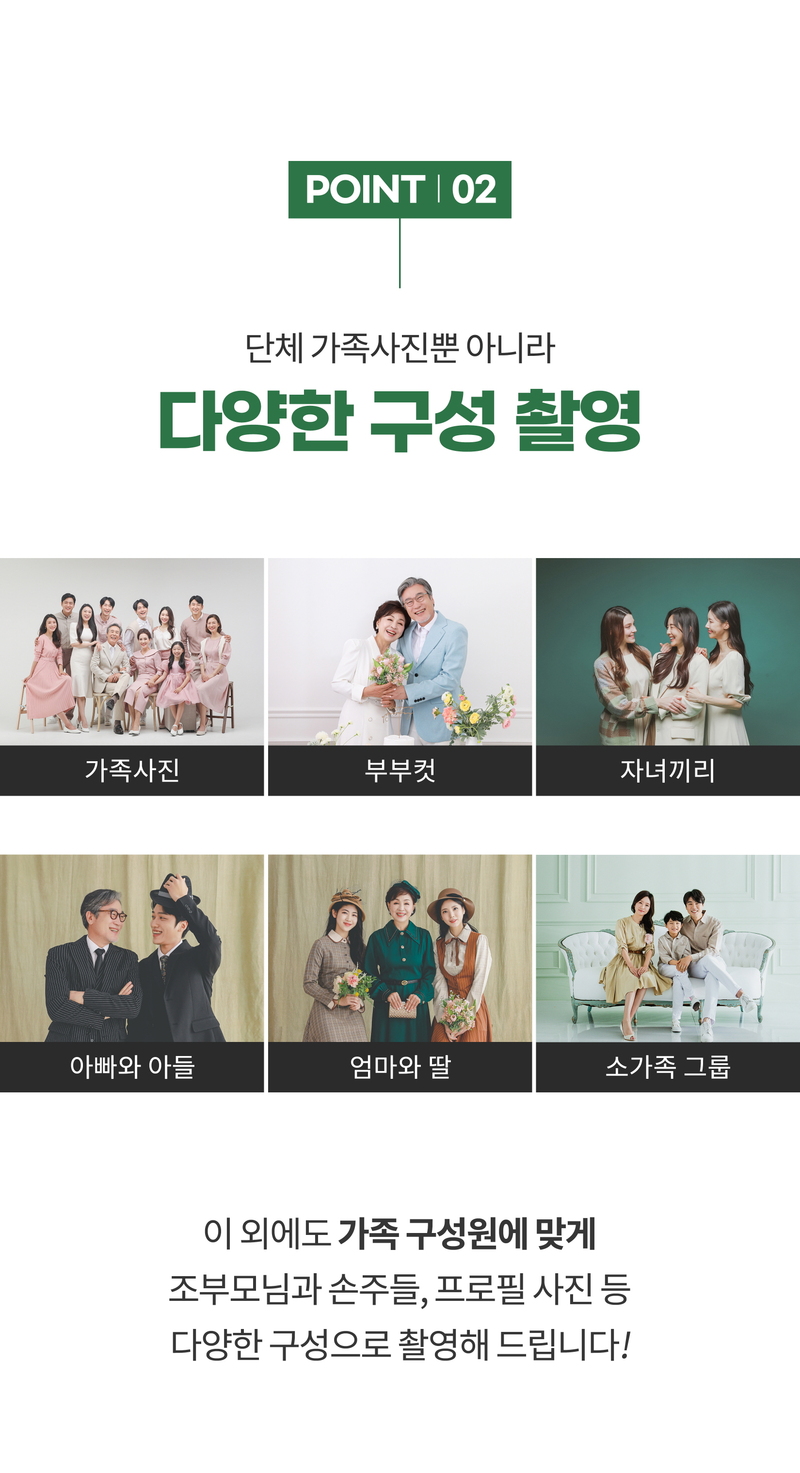 가족사진 촬영 88000 특가 (2컨셉 촬영+의상+부모님 헤어 메이크업 포함)